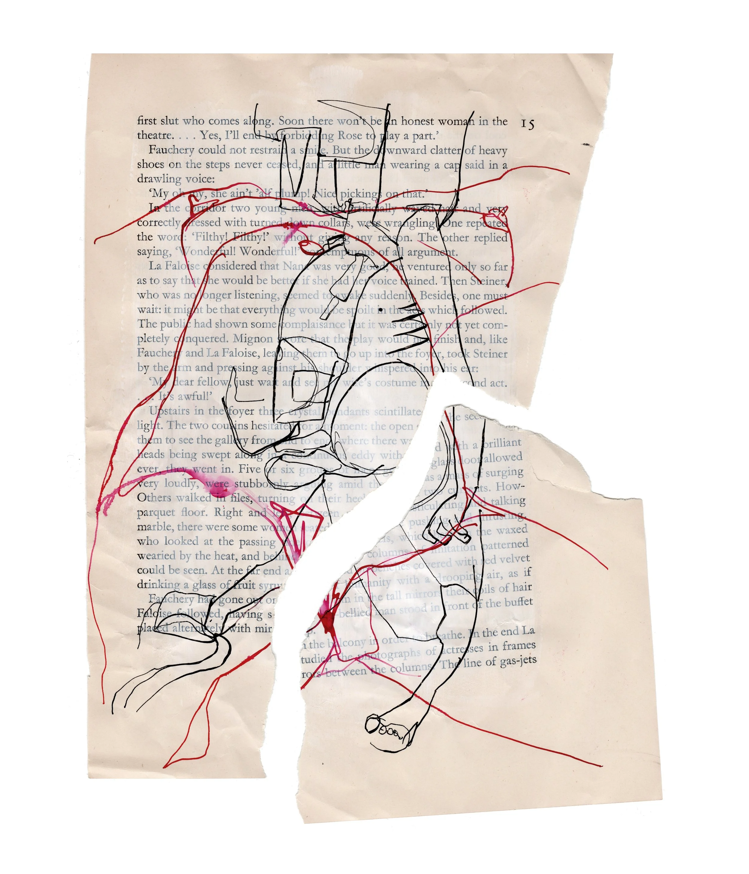 "Exterior Womb II - Torn" 2026, Ink and acrylic on found paper, (18cmx25cm)